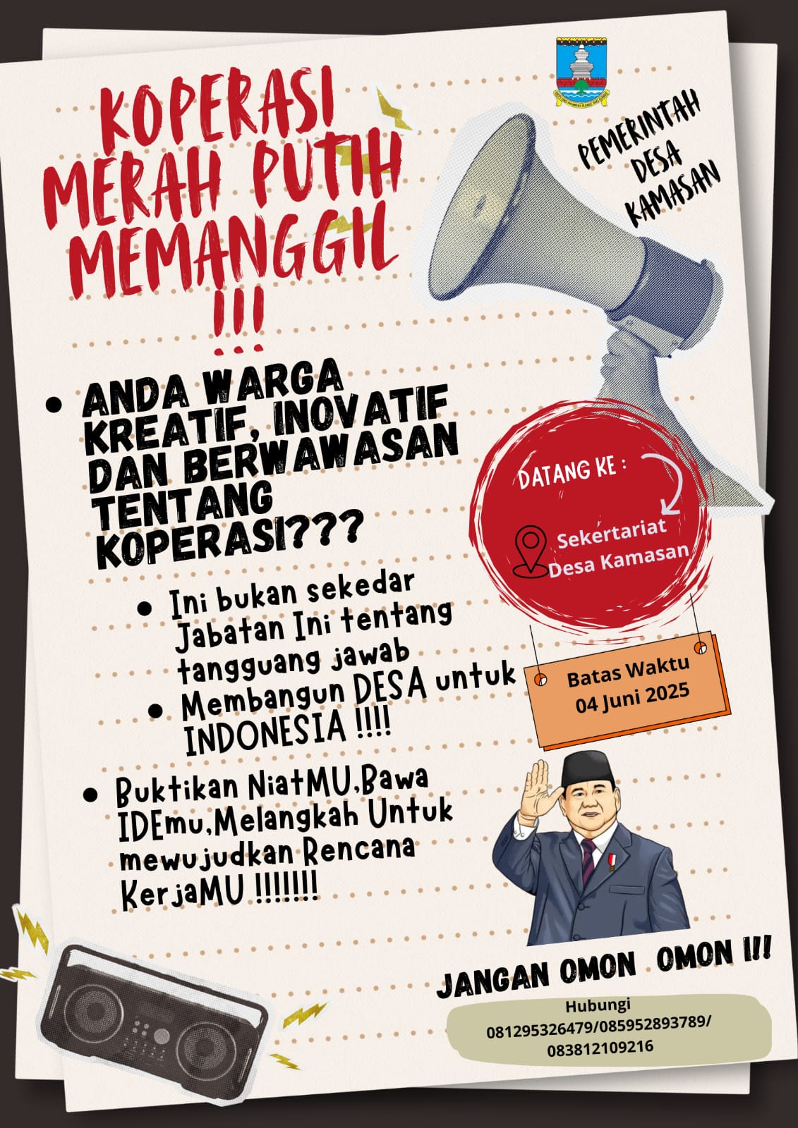 Berita Desa Koperasi Desa Merah Putih Desa Kamasan Resmi Terbentuk, Babay Rosadi Terpilih sebagai Ketua Baca Selengkapnya June 11, 2025